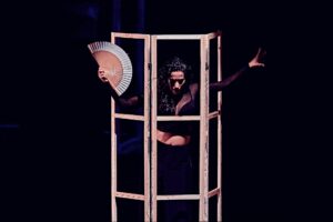 ‘Himnos a la noche’ es la nueva creación escénica de Cristina Hall. Una obra repleta de elementos surrealistas y realismo mágico donde los sentidos del espectador serán retados continuamente para confrontarlo con sus experiencias nocturnas más íntimas y profundas; aquellas donde los pensamientos, locuras y reflexiones, derivan de cientos de noches en vela y desemboca en un canto hacia la noche.