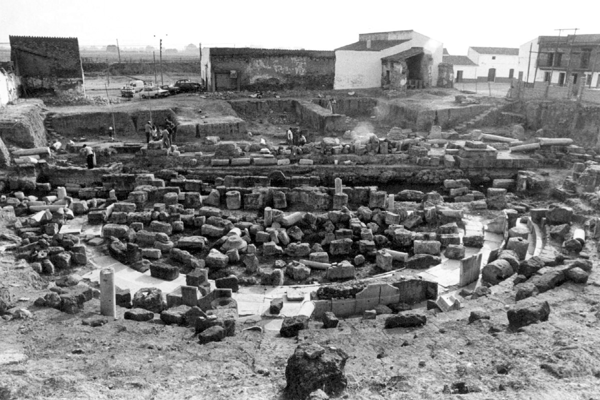 Foto: Estado de la excavación a finales de los años 70. (Conjunto Arqueológico de Itálica).